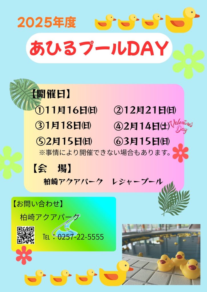 【全6回】冬季の第3日曜日は🦆あひるプールDAY🦆