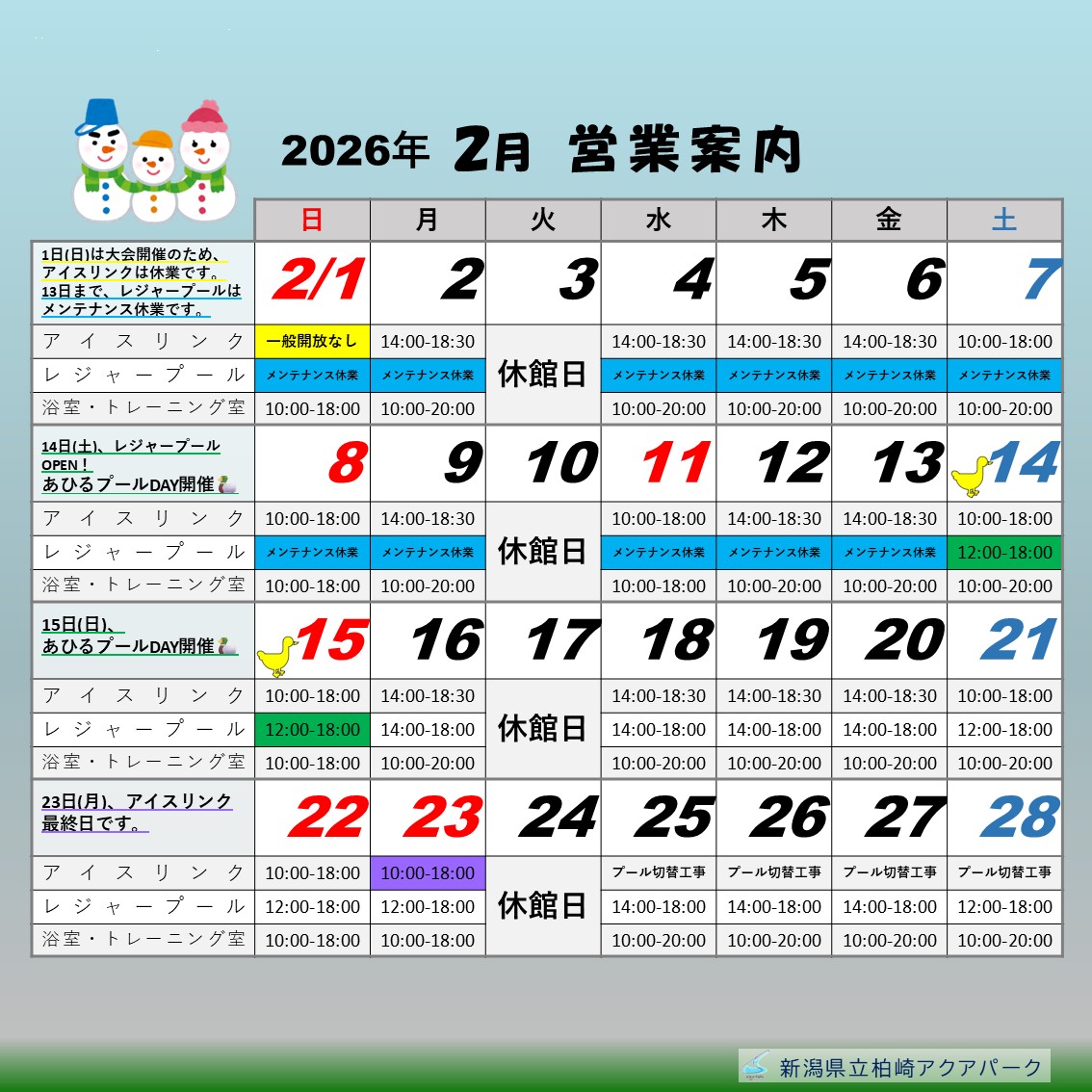 詳しくは下記の「レジャープール予定」をご覧ください。